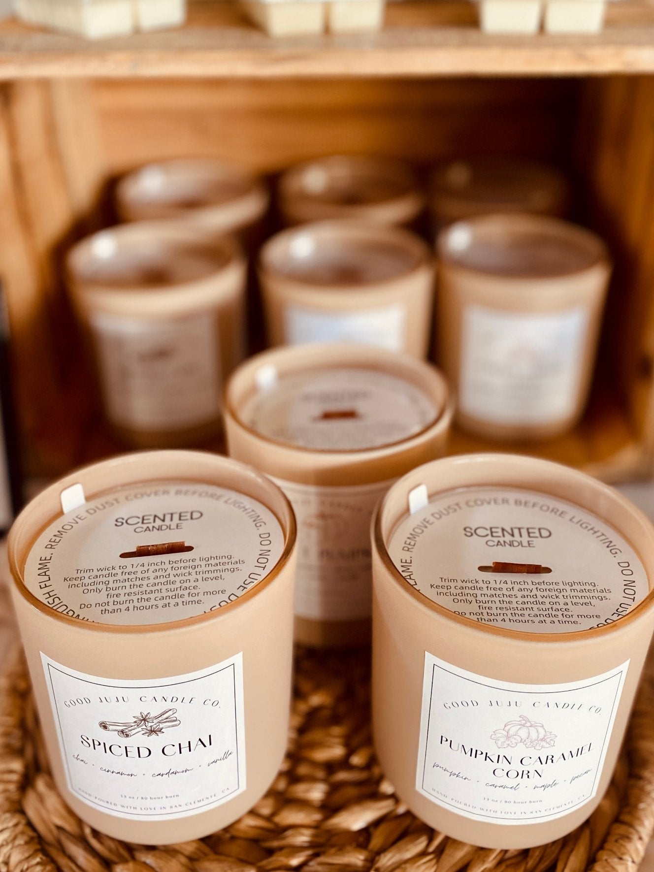 Shop NowClean, Reiki-charged, and full of good vibes — our hand-poured candles bring cozy crackles and a boost of happy energy to your space.